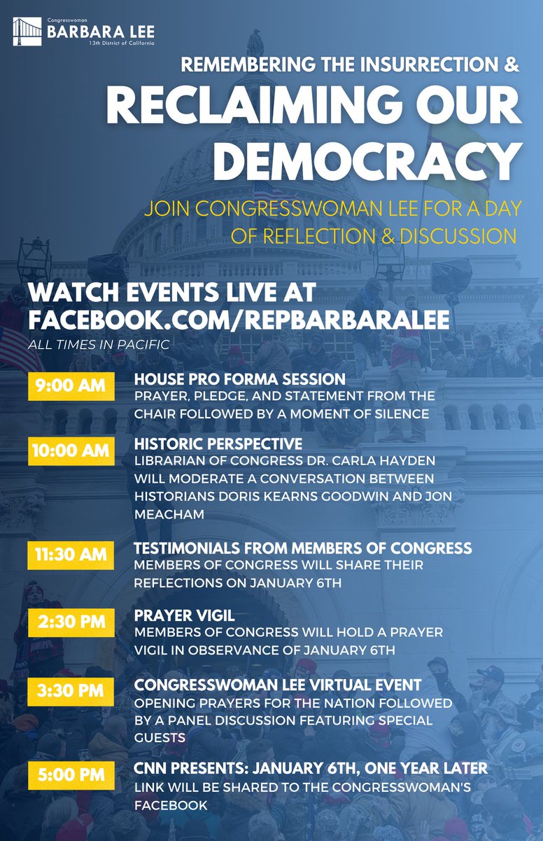 Rep. Barbara Lee @RepBarbaraLee: On the first anniversary of the Jan 6th, join myself, (Original Post)