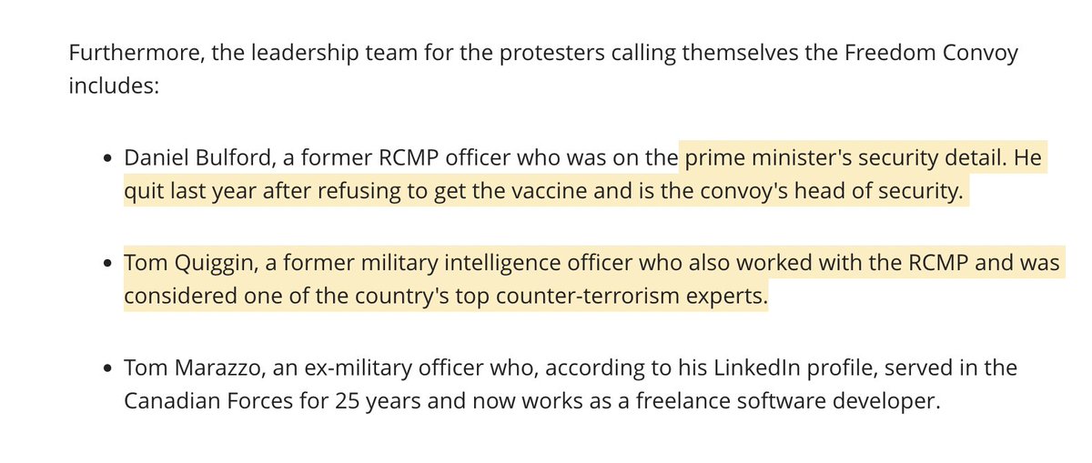 Canadian "Oath Keepers." Police forces and the military are not a stronghold of liberal values. The right coopeted the disease and the vaccine to further their Fascist doctrine. Create hate and and offer an outlet for it. It will continue to grow until liberals learn to push back in a way that the far right understands. As long as they consider us "snowflakes" the violence will escalate; it is what bullies do.