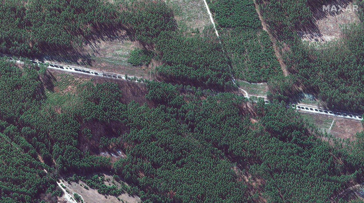 (18,272 posts)Dramatic satellite images released by Maxar Technologies on Monday evening showed a massive 40+ mile long convoy of Russian military vehicles snaking along roadways northwest of Kyiv.