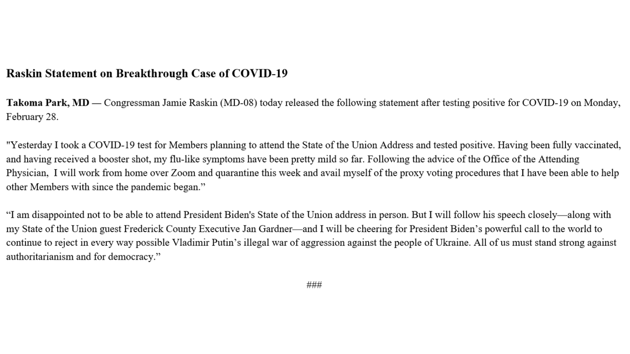 jamie raskin tests positive for covid (Original Post)