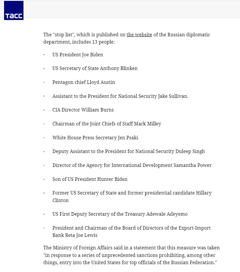 Related: Editorials & Other Articles, Issue Forums, Alliance Forums, Region ForumsRussia also sanctioned Hunter Biden and Hillary Clinton, among others. No more matryoshkas for them.