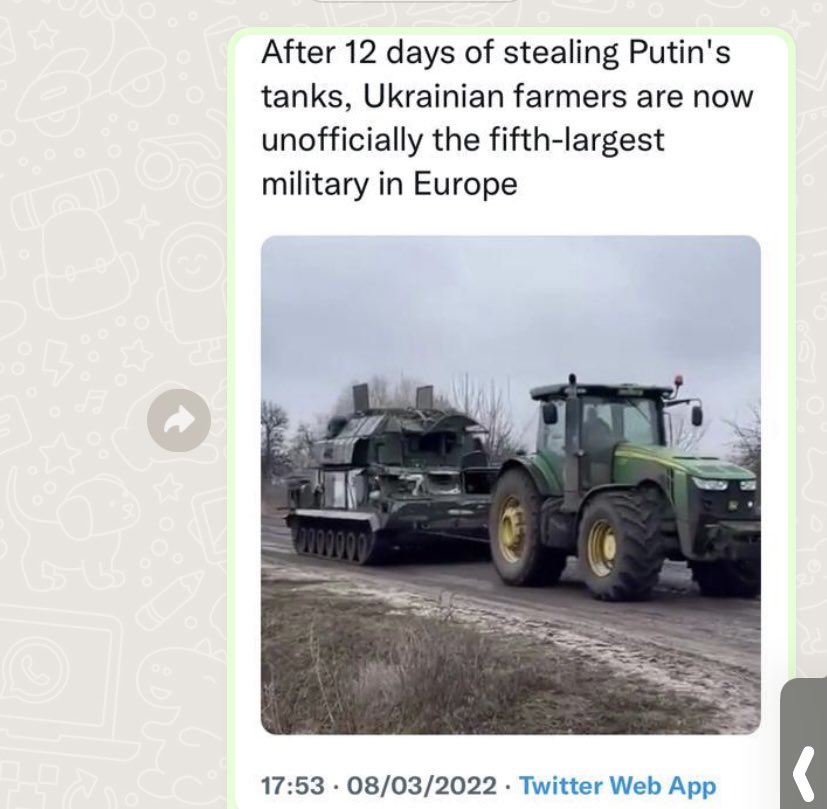 (14,097 posts)that the tractors are almost all John Deere? Apparently John Deere got a huge contract in Ukraine awhile back.