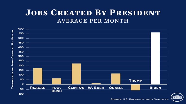 (95,631 posts)Jobs: President Bidens first year was the greatest year of job creation in American history, with more than 6 million jobs created.