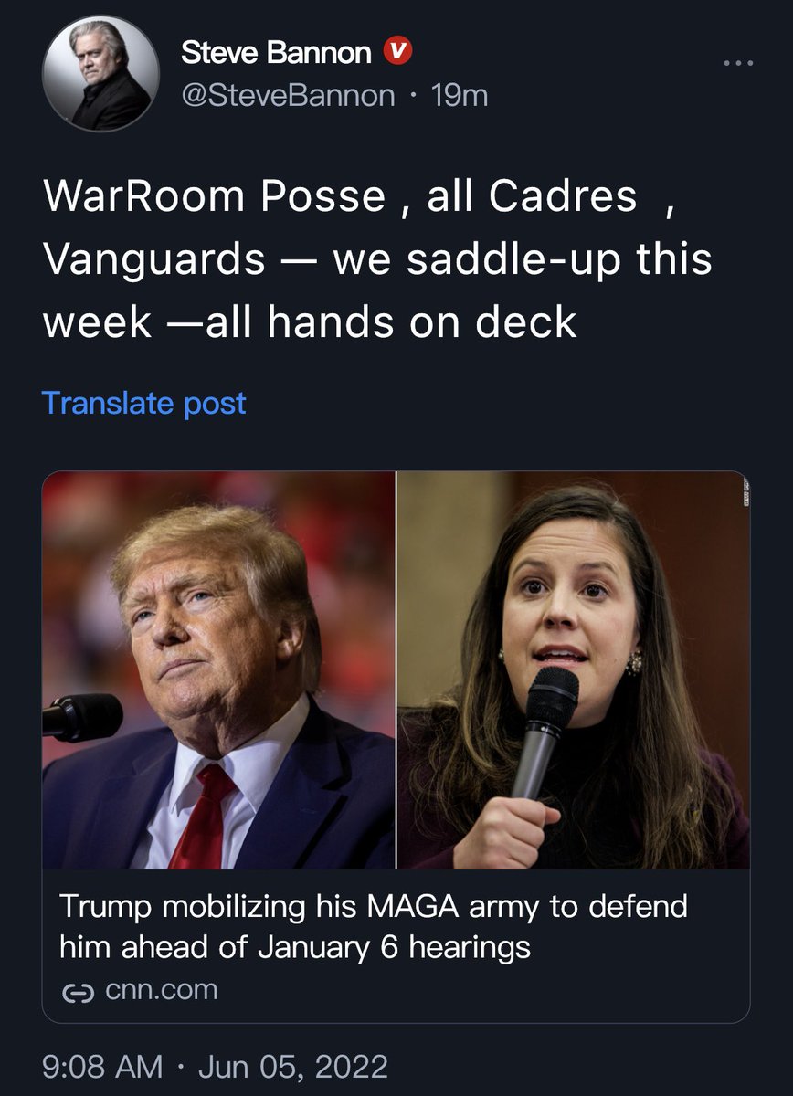 CNN is reporting that Rep. Elise Stefanik (R-NY) is heading up the diversionary antics, with Trump communicating "to some of his most loyal acolytes on Capitol Hill that the former President wants people vigorously defending him and pushing back."
