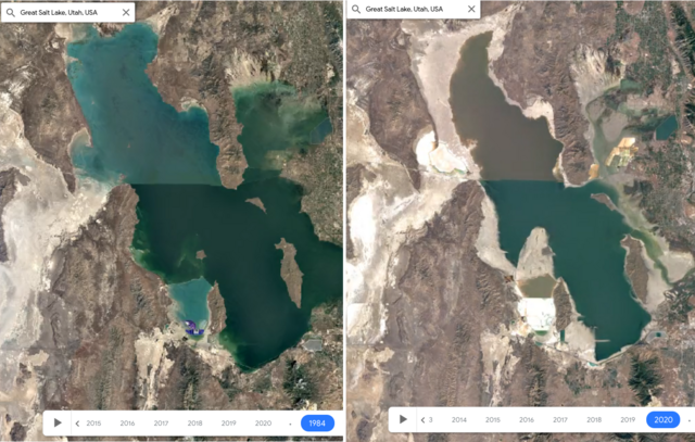 Climate change and the siphoning of water from its mountain source are behind this alarming evaporation. The population of Salt Lake City has exploded in recent years, meaning more and more of the mountains snowmelt is being diverted from rivers to homes and farms.