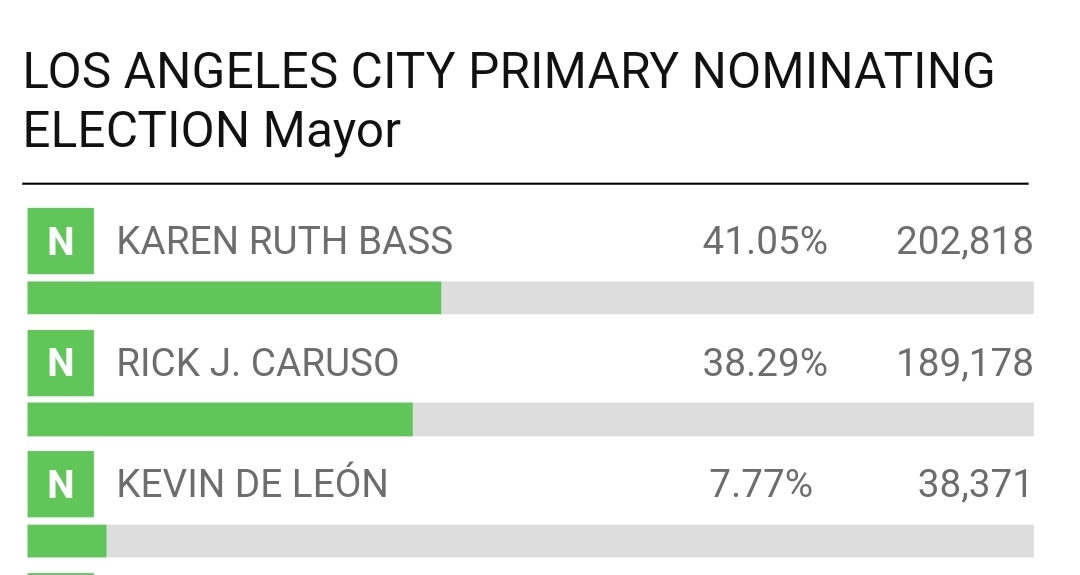 Related: Editorials & Other Articles, Issue Forums, Alliance Forums, Region ForumsL.A. Mayor: Bass overtakes Caruso, now leads 41.05%/38.29%