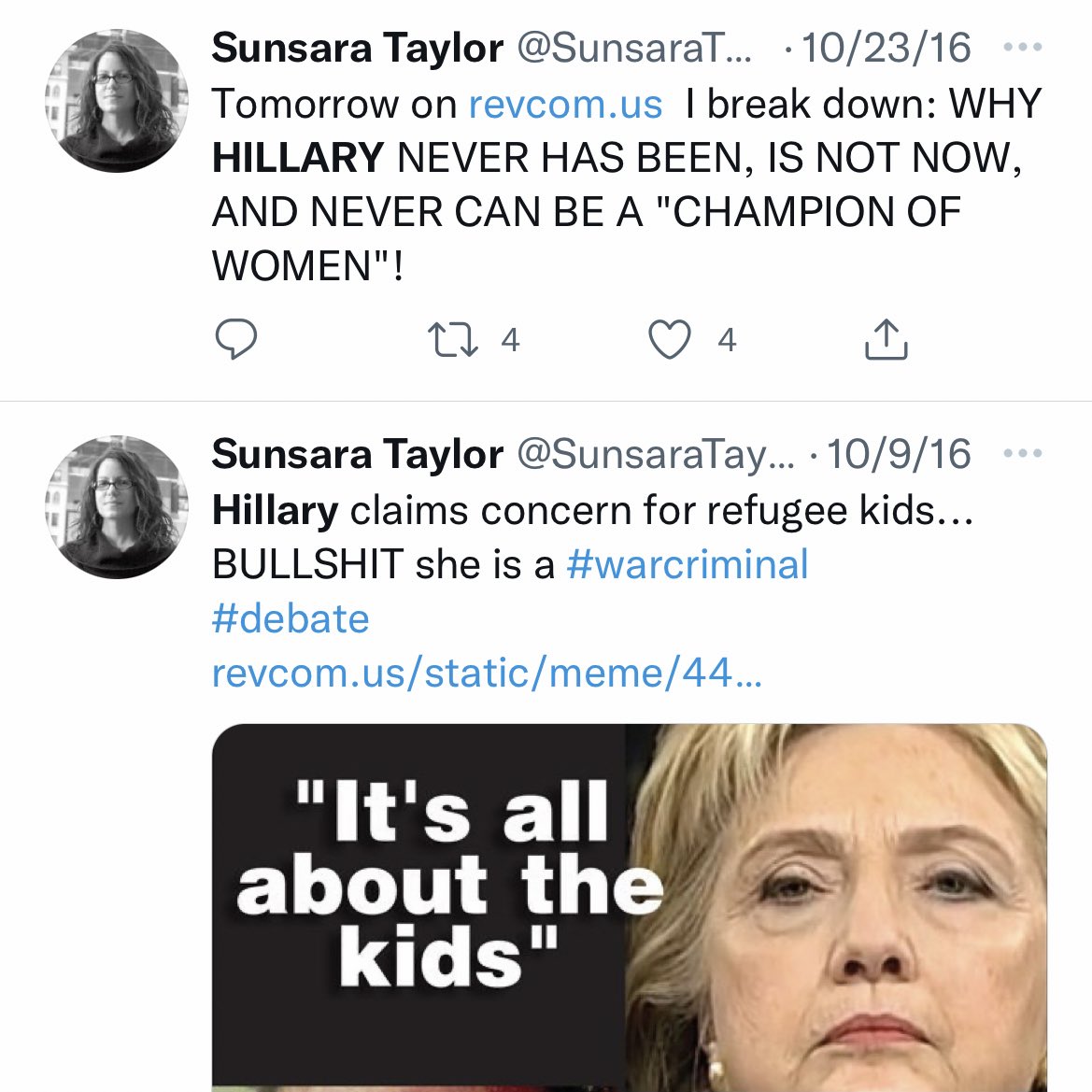 The founder of Rise Up 4 Abortion Rights, Sunsara Taylor, is also a Revolutionary Communist Party member who did her most to see Hillary not win the 2016 election. Even tweeting on Election Day that Hillary is not the answer.