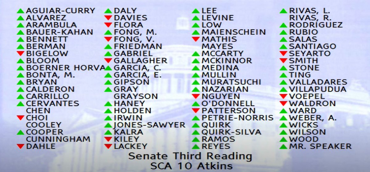 The amendment needs two-thirds support to pass the Assembly. If it passes, it then goes to California voters on the November ballot. #SCA10
