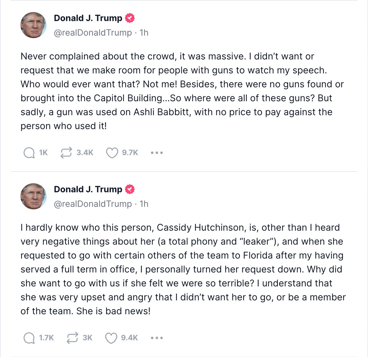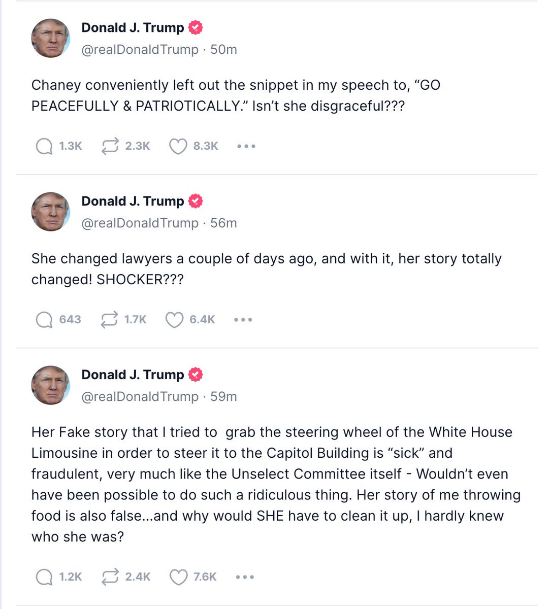 (38,393 posts)Despite the fact that President Asshole doesn't understand the J6 Committee isn't conducting a trial, Ms. Hutchinson could use a corroborating witness or 2.