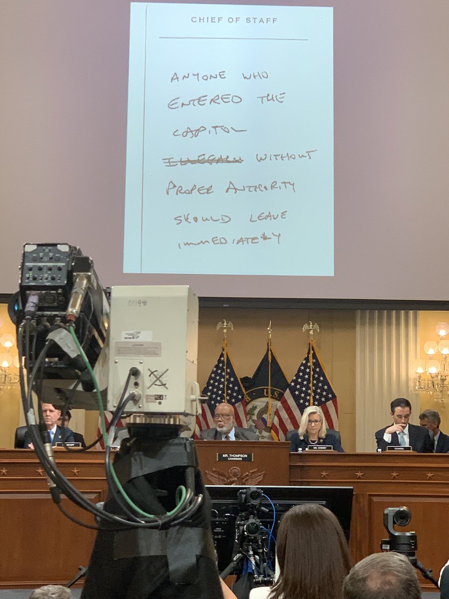 LIZ CHENEY: And it's written on a chief of staff note card, but that's your handwriting, Ms. Hutchinson?