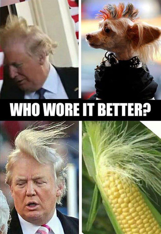 (4,700 posts)trying to shame people for their looks (especially women), I have to say that he looks fucking ridiculous. . . What a hog, and that hair is just one long, bleached strand that he wraps around his head.