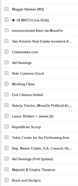 (3,868 posts)I get irked at the ones that continue to beg even after I have donated. I think many of these emails are automated and programmed to be sent every one or 2 days. The worst campaigns in terms of overwhelming my mail box is Fetterman, Warnock and Kelly. I gave to Warnock and Fetterman. All 3 are drowning in money so I've focused mostly on Dems who don't have the big contribution bases that they do.