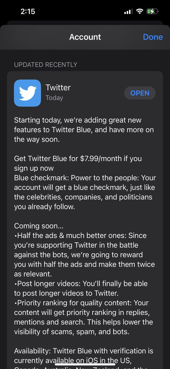 Ok so they launched the new Twitter Blue features, but they forgot to change the IAP price from $4.99, and the Verified feature doesnt actually work. The New banner takes you no where.