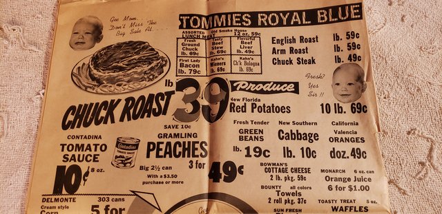 (40,365 posts)Cans of soup for $.50 each, bacon at $2.99 a 12 oz package, hot dogs at $.99 a package, hamburger at $1.99 a pound and so on.