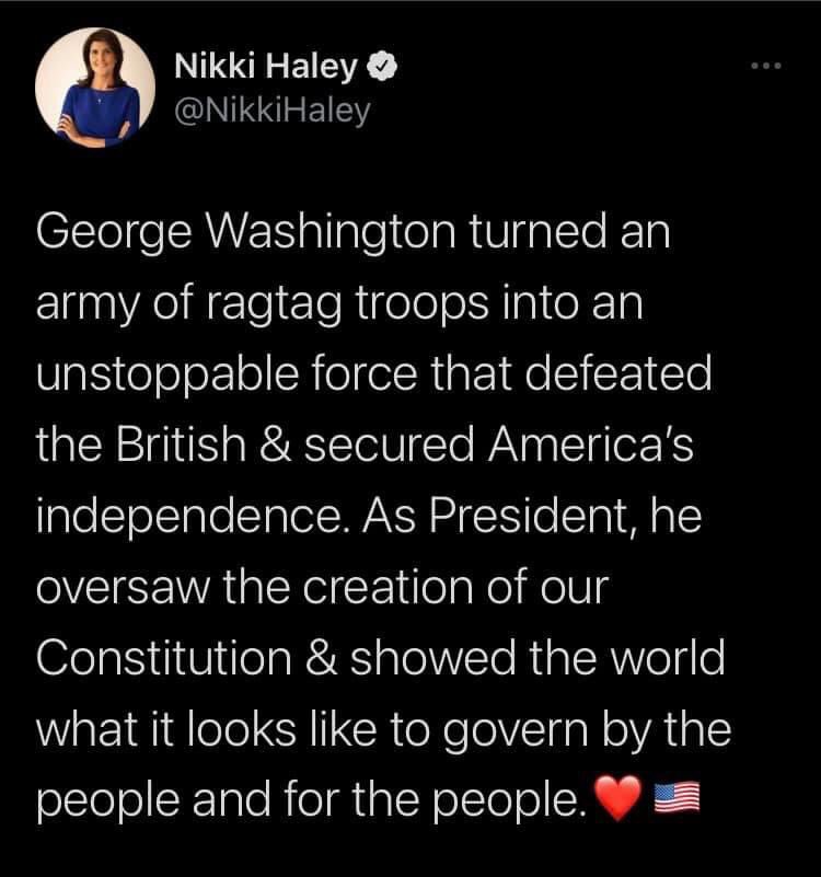 Related: Editorials & Other Articles, Issue Forums, Alliance Forums, Region ForumsHaley : 'As President, George Washington oversaw the creation of our Constitution'