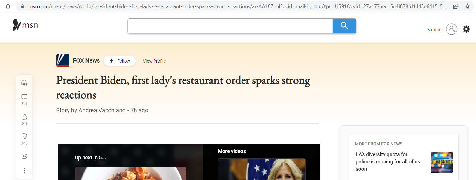 https://www.msn.com/en-us/news/world/president-biden-first-lady-s-restaurant-order-sparks-strong-reactions/ar-AA187imI?ocid=mailsignout&pc=U591&cvid=27a177aeee5e4f878fd1443e6415c51c&ei=22President Biden and First Lady Jill Biden raised eyebrows when they reportedly ordered the same dish at a posh D.C. restaurant in February.