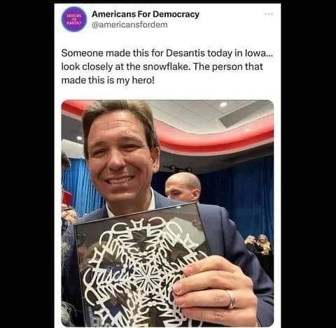 Florida Governor Ron DeSantis may have thought he was mocking those he has railed against when posing with a handmade snowflake. However, its hidden message showed that he was the subject of the joke.