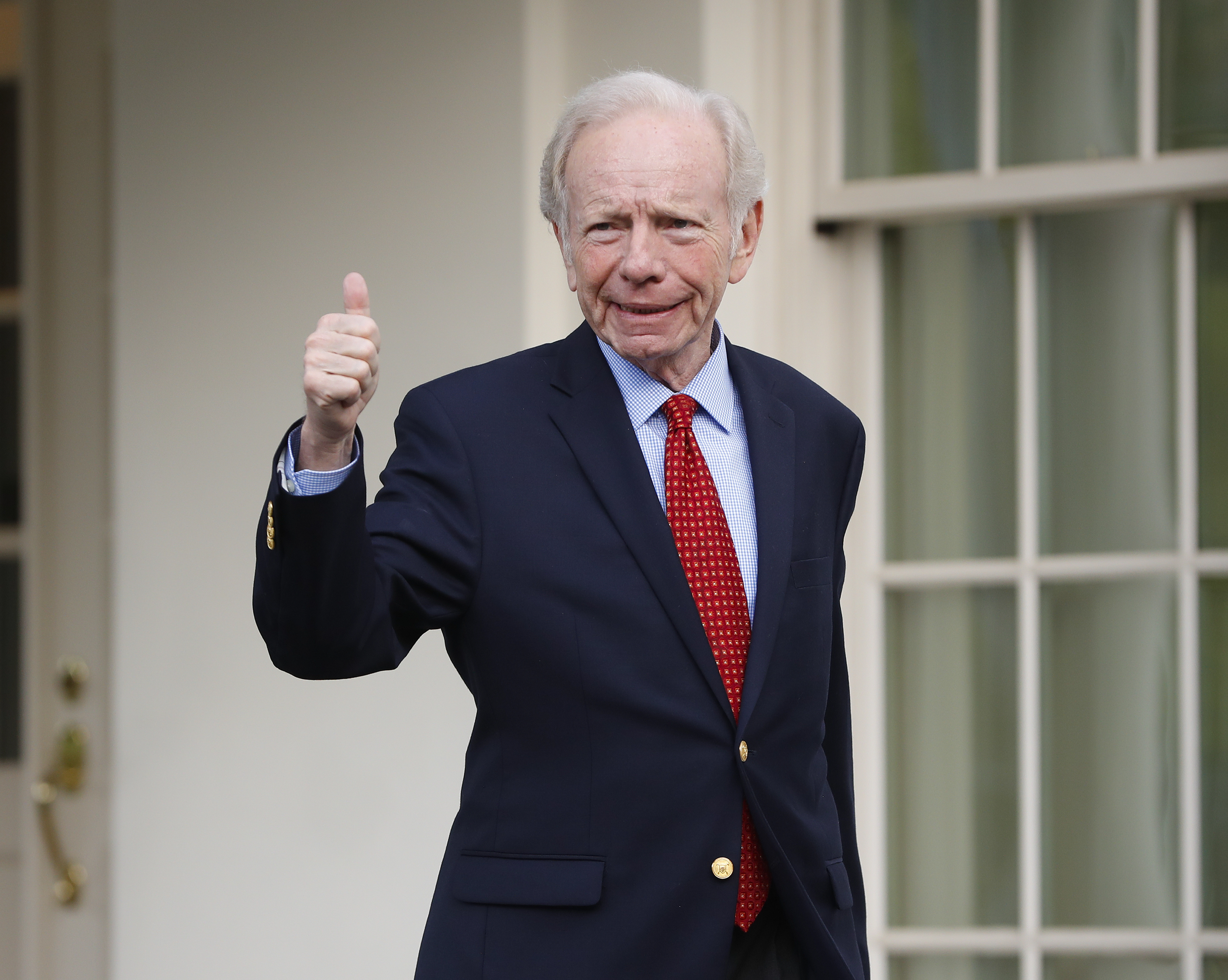Former senator Joe Lieberman (I-Conn.) gives a thumbs-up as he leaves the White House in 2017.