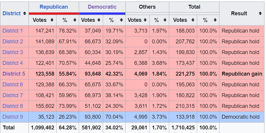 8 of the 9 TN US House seats are now safe Red, only TN-9 (Memphis) is Dem now (Steve Cohen).
