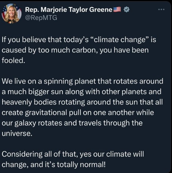 (20,410 posts)That a member of congress can be so ill-informed and educated. I guess we just need to wait until our galaxy is in a nice, temperate environment.