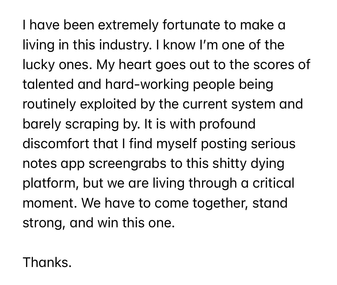 Six-tweet thread starting with the one below. He rarely posts on Twitter - which he refers to as "this shitty dying platform" - and he posted his message in a series of screen grabs, which I'll copy below.