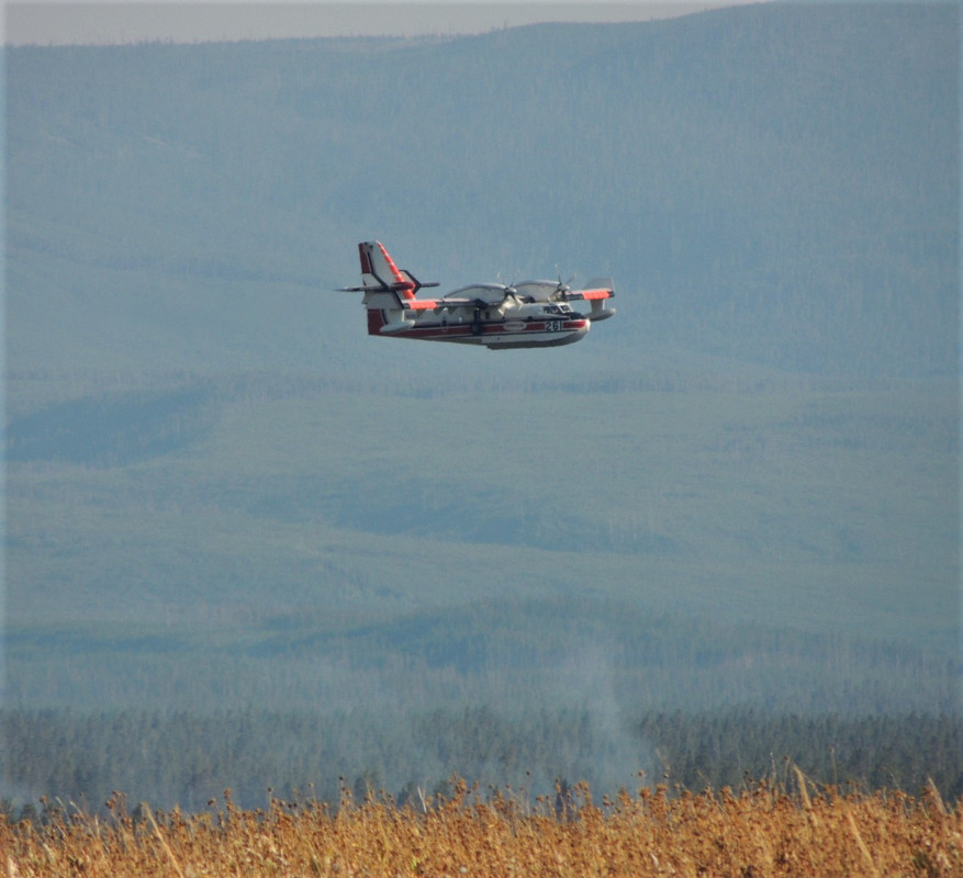 Here's a Canadian AF water scooper/deHaviland right after a water drop on a major fire in YNP a few years ago.