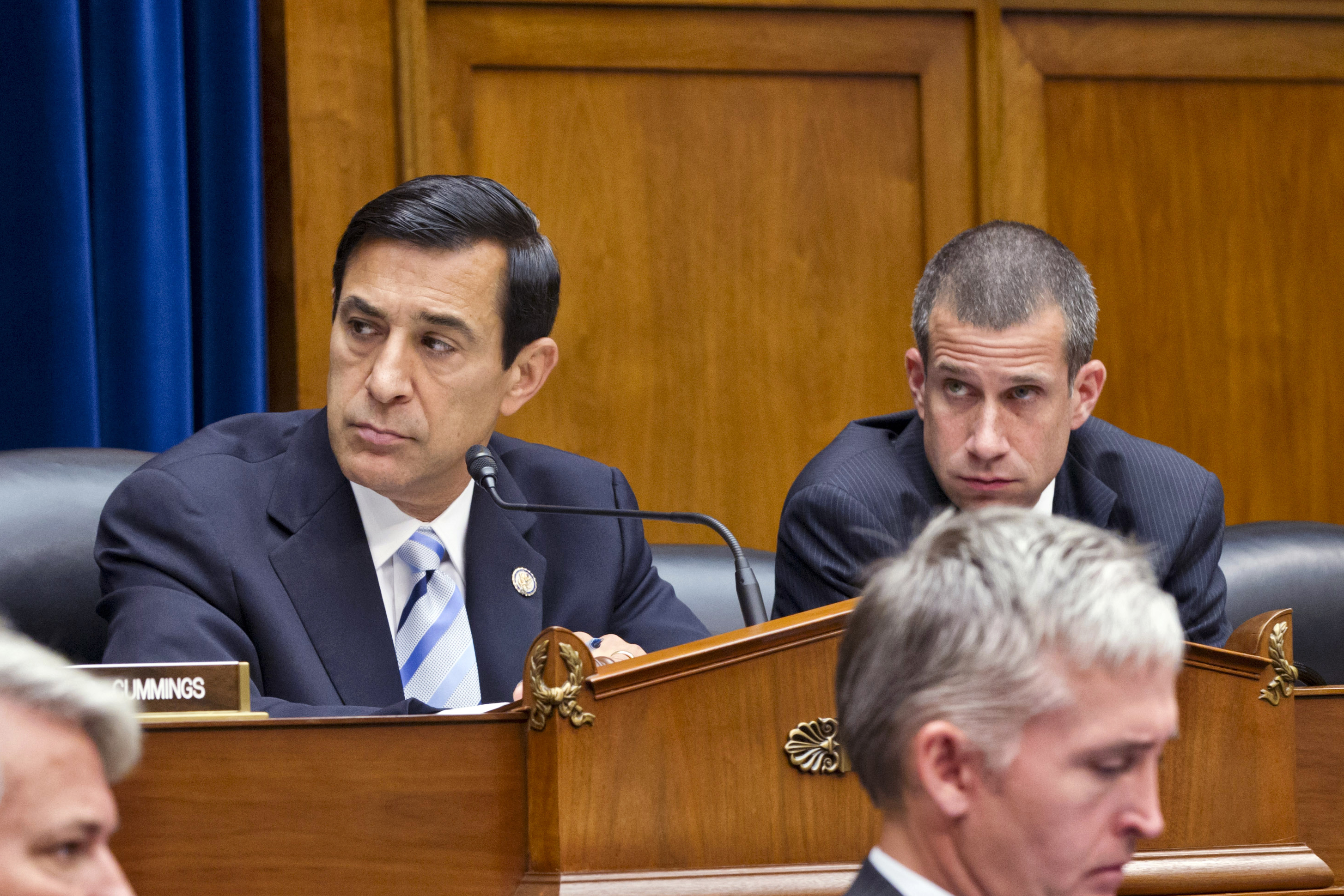 Stephen R. Castor, right, and then-House Oversight Committee Chairman Darrell Issa (R-Calif.) during a committee meeting on whether to hold Attorney General Eric Holder in contempt of Congress in 2012. (J. Scott Applewhite/AP)