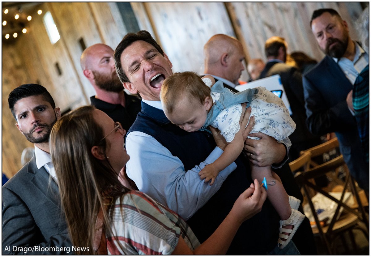 Related: Editorials & Other Articles, Issue Forums, Alliance Forums, Region ForumsRon DeSantis, governor of Florida, greets a baby during a campaign event at Sun Valley Barn...