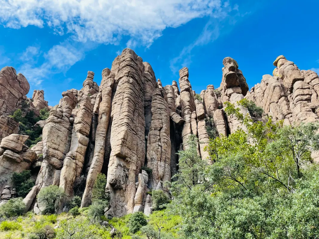 Dubbed the The Land of Standing-Up Rocks by the Apache, Chiricahuas iconic rhyolite pillars earned it national monument status back in 1924. These otherworldly odditiesreminiscent of the orange-hued hoodoos of Utahs Bryce Canyonnumber in the thousand and were formed millions of years ago by a volcanic eruption 1,000 times more powerful than Mount St. Helens. Adding to the mystique, Chiricahua is one of Arizonas sky islands, a prodigious mountain range that emerges from the desert like a hazy mirage.