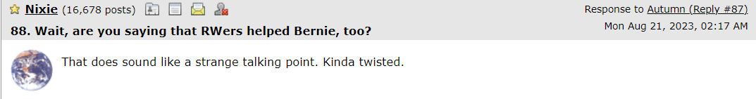 (5,825 posts)She was a major Bernie Bro after all.