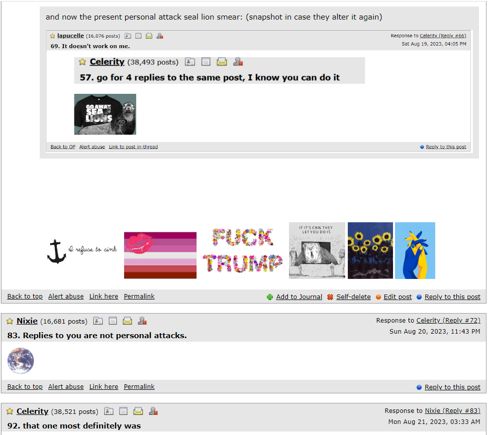 (54,405 posts)the smear and changed it) new one calling me a sea lion.