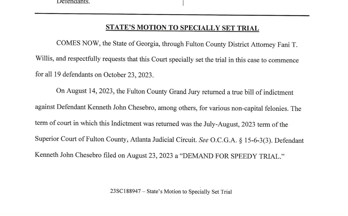 Ken Chesebro, the Trump co-defendant who asked for a speedy trial, thought he was calling Willis' bluff on her readiness to go to trial. He was not. Willis is not here to play.