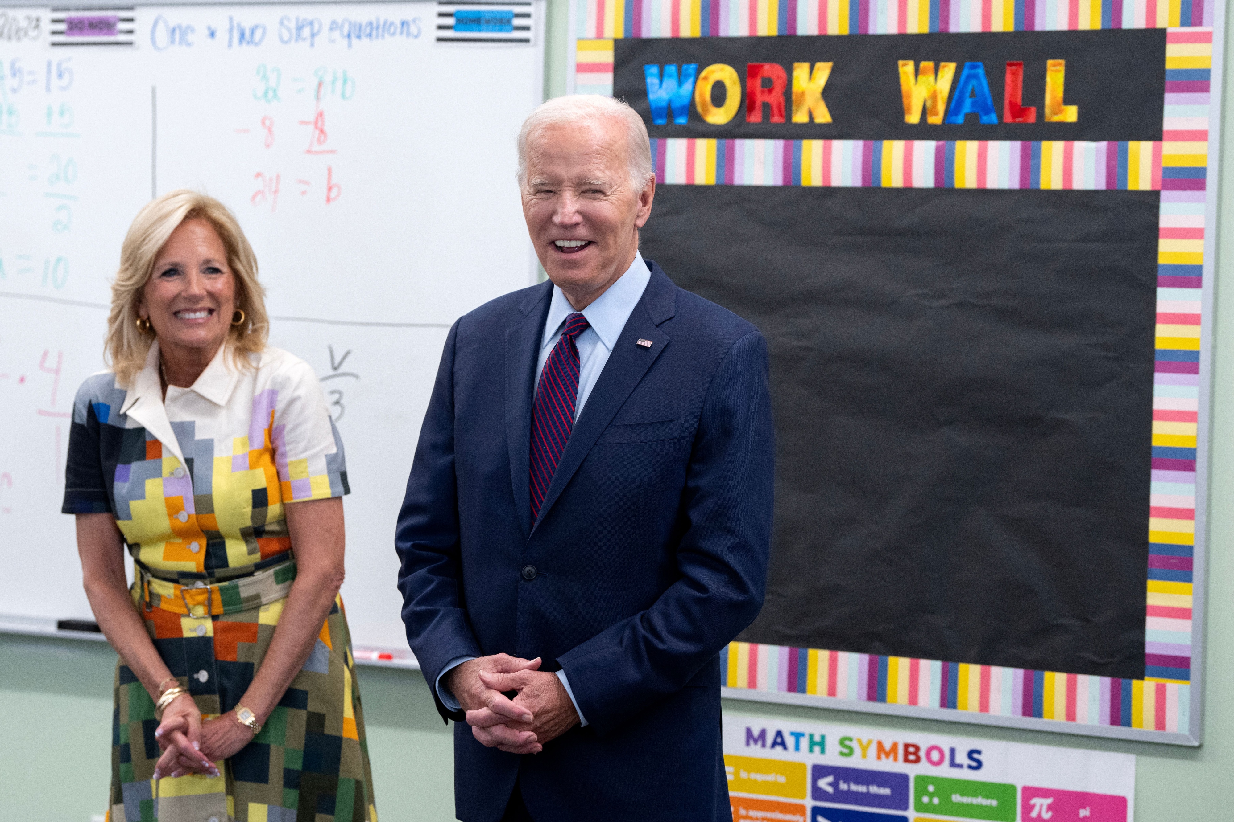 In the classroom, decorated with colorful posters that displayed math symbols and the order of operations, one student proclaimed loudly, Joe Biden! The president hugged one excited child and talked about whether she could someday become president.