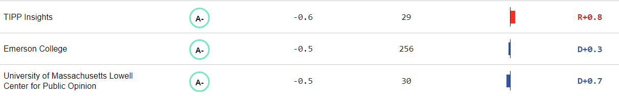 (10,969 posts)I'm a hobbyist and not an analyst, so I use them more to get a general sense of things for my own edification. And part of that is looking at bias. I remember noting at the time that some people were really pushing Morning Consult and YouGov collaborations on DU. I noted that they were pretty biased to the Left and got a lot of push back for that (one person kept screaming at me - they're also in this thread). But a lot of the blue Dobbsian wave was predicated on Morning Consult stuff.