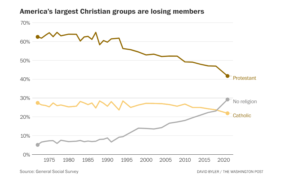 The LDS Church isnt unique in its struggles. Americans increasingly distrust organized religion and organizations of all kinds, for that matter. That feeling of alienation is driving Americans away from other Christian sects as well.