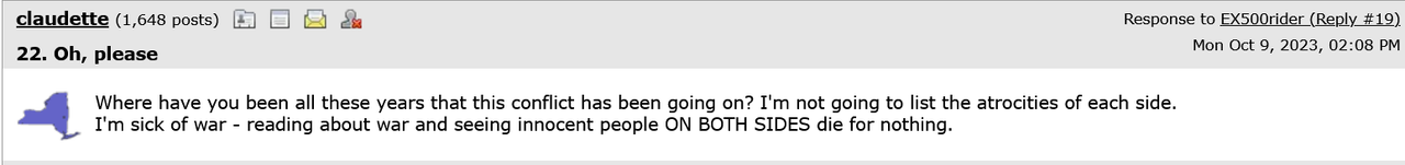 (5,455 posts)Where have you been all these years that this conflict has been going on? I'm not going to list the atrocities of each side. I'm sick of war - reading about war and seeing innocent people ON BOTH SIDES die for nothing.