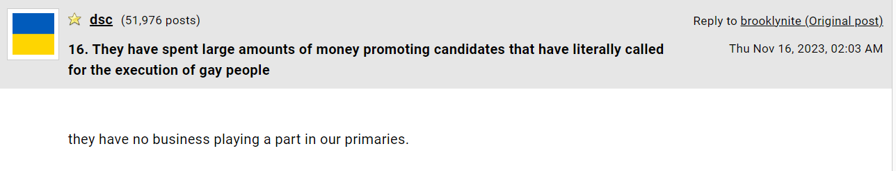 I am happy to be a mainstream Democrat. I was a Clinton delegate to the Philadelphia convention and has been working on voter protection efforts since the 2004 election. I maxed out to President Biden in 2019 when he really needed the money and got to meet President Biden in person at two different fundraisers. These primary contests will be fun to watch, and I will probably donate to one or more of these races in addition to donating to President Biden and Collin Allred.
