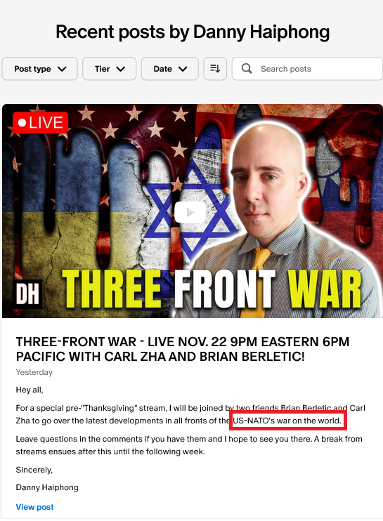 As for Danny Haiphong, he's a pro-Russia, anti-Nato conspiracy theorist.