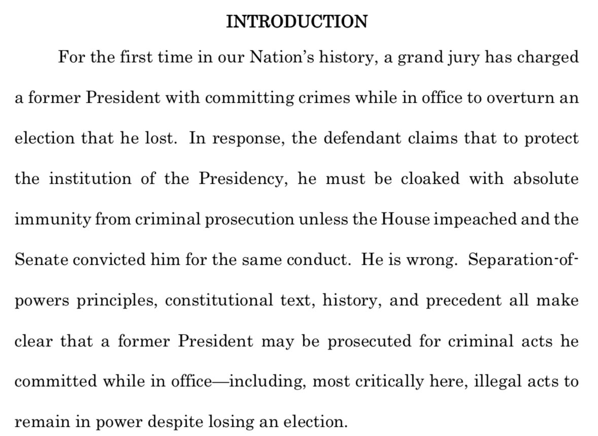 (38,410 posts)And it largely cites conservatives currently on the Supreme Court (Kavanaugh) or their conservative predecessors (Scalia, Alito), the Federalist papers, and things which ought to appeal to conservatives to make the point that a former president is not above the law.
