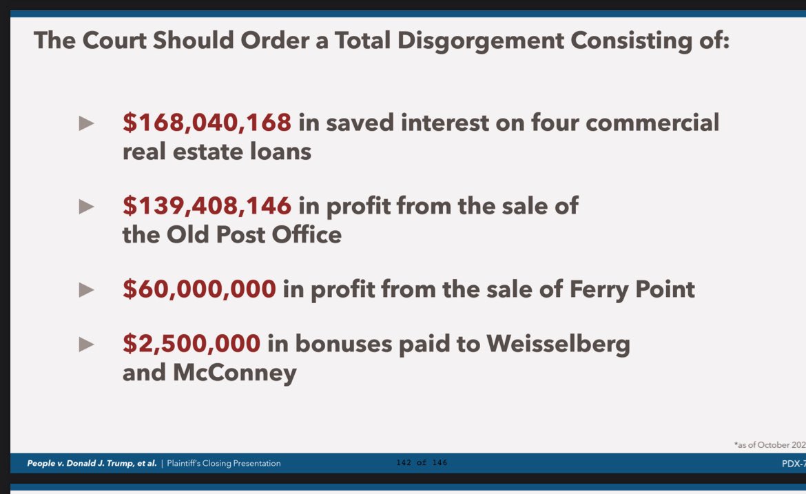 (23,124 posts)I believe she is seeking both a punitive personal fine, as well as a disgorgement (liquidation and seizing of assets) from his corporations.