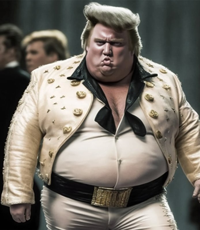 (130,533 posts)I don't know whether to laugh or vomit, but you might say that his physique resembles that of Elvis in his last days, just before he croaked on the toilet.