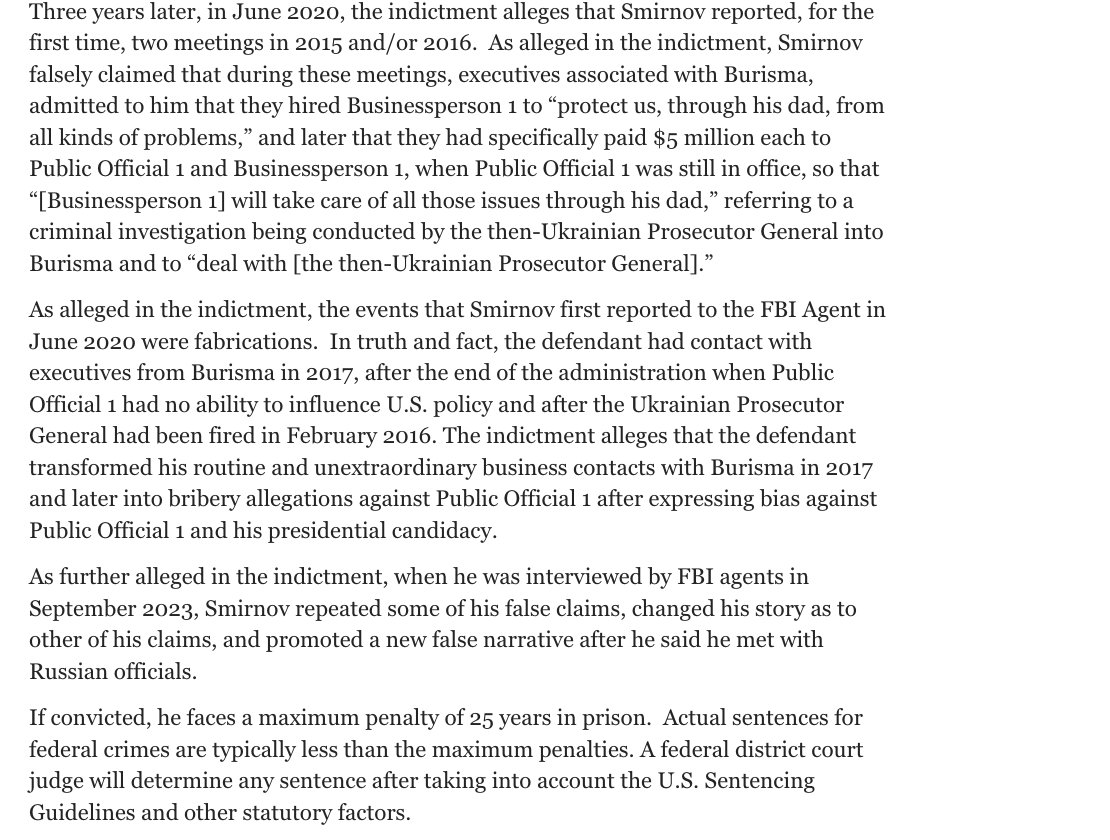 BREAKING: DOJ & Special Counsel David Weiss just charged Alexander Smirnov, who is the informant who provided derogatory statements & information against Hunter Biden & Joe Biden. They charged him with "false statements & obstruction crimes." This is pretty big.