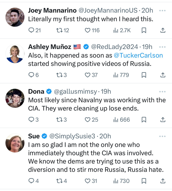 (12,716 posts)I have no doubt that her post came directly from her bosses at the FSB. And all of the people echoing it are Russian bots.
