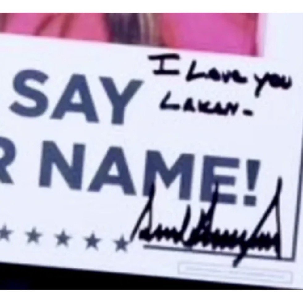 (8,103 posts)He hung the pen (looks like a sharpie) on the poster. Disrespectful, and emphasizes the fact that he signed it. Classless guy of ill repute.