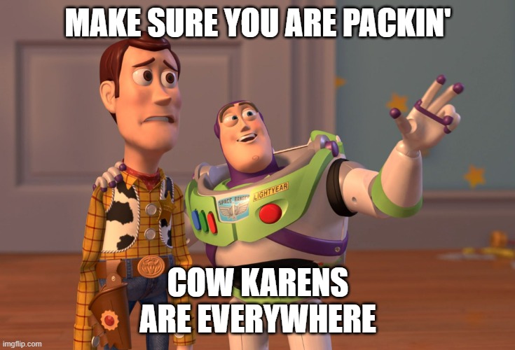 Wow, I didn't know you had to pack heat around cows. Or do only GOPers have to do that because cows know they're galactically stupid and might want to trample them just for that reason?