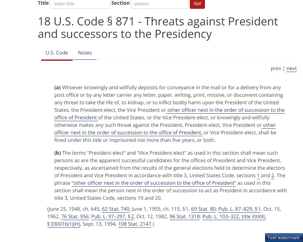 https://en.m.wikipedia.org/wiki/Threatening_the_president_of_the_United_States