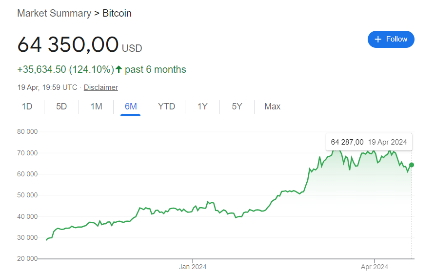 At a price (near today's price) of 65,000 USD per bitcoin