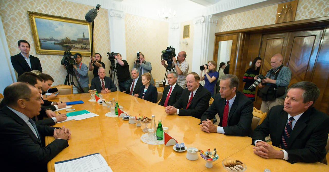 Joining Shelby were Sens. Steve Daines (R-Mont.), John Hoeven (R-N.D.), Ron Johnson (R-Wis.), John Kennedy (R-La.), Jerry Moran (R-Kan.) and John Thune (R-S.D.), and Rep. Kay Granger (R-Tex.). Members of the delegation set off on their trip late last week promising to be tough with Russian officials ahead of the presidents visit, especially on matters of election interference. But they struck a conciliatory tone once there: The point of their visit, Shelby stressed to the Duma leader, was to strive for a better relationship with Moscow, not accuse Russia of this or that or so forth.