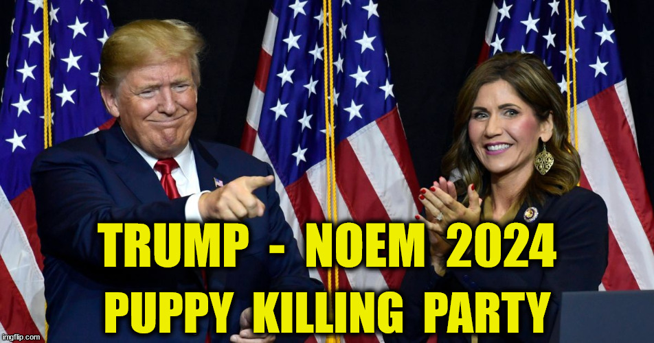 I guess it's too much to hope that karma comes for her in the same way Noem went for the pup. There is nothing worse, in my book, as someone who tortures or kills an innocent creature. May the wrath of all the gods, especially the Old Gods, rain down on them. Wishing Cthulhu on her isn't enough, in my mind. Gee... sorry... can you tell how upset this has me?