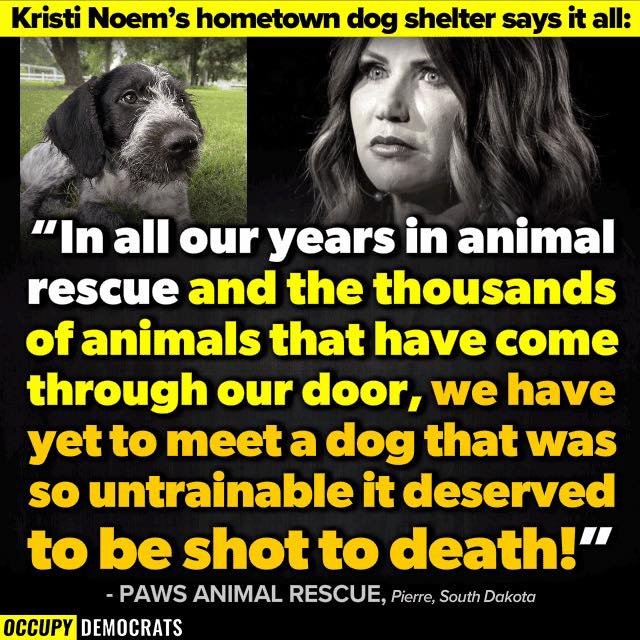 Many people thought her affair with Corey Lewandowski was it, but there was hardly a reaction. Right wingers are so accustomed to ignoring behavior they say they condemn that her unrighteous behavior was not just excused, but treated as if it never happened. But the puppy shooting thing might be, finally, too much. It looks like she is now too unlikeable to be considered as a VP candidate. As a dog lover myself, I'm not completely surprised, but I'm also a fan of marital fidelity, so I'm a little disappointed that the tawdry affair didn't do the trick, and we had to find out Noem is a puppy killer before we decided she went too far.